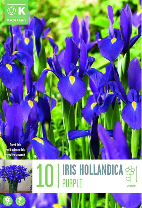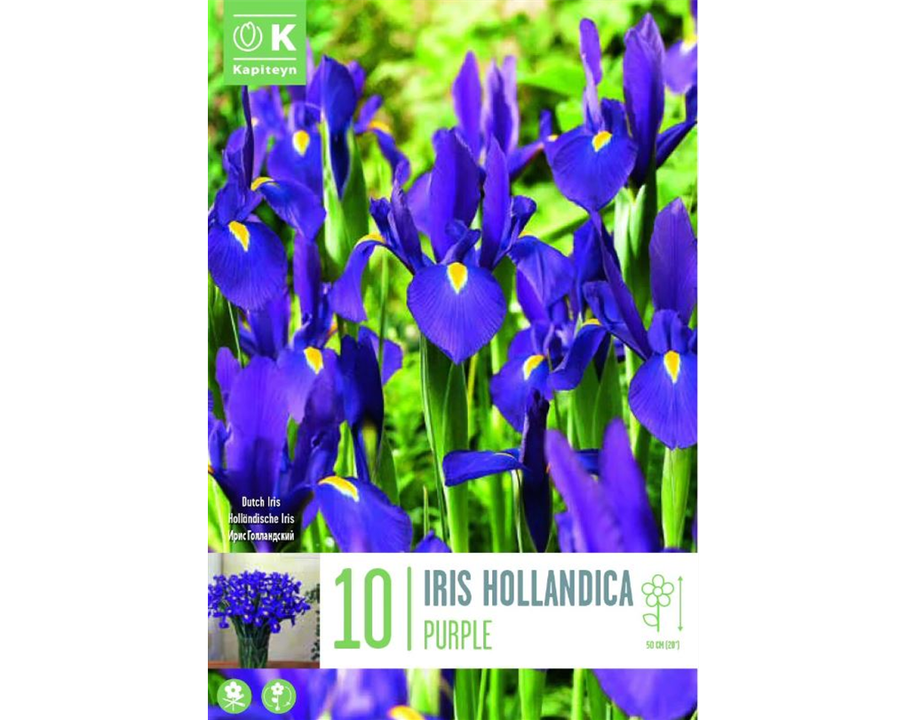 Die Holländische Schwertlilie (Iris hollandica) ist eine aufrechte, kompakte und rhizombildende Staude, die von Mai bis August violette Blüten bildet. An einem sonnigen bis halbschattigen Standort mit durchlässigem, humosem und lockerem Boden erreicht sie gewöhnlich eine Höhe von ca. 60 cm und wird ca. 20 cm breit.