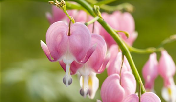 Dicentra spectabilis, rosa bildet in Trauben angeordnete, rosafarbene Blüten ab Mai.