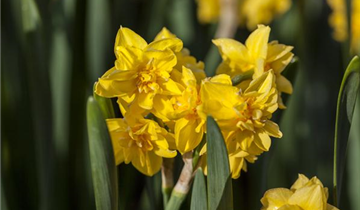 Die gefüllte Narzisse 'Tête à Tête Boucle' (Narcissus cyclamineus) bringt von März bis April attraktive gelbe Blüten hervor. Sie bevorzugt durchlässigen, lockeren, nährstoffreichen Boden in sonniger windgeschützter Lage. Die aufrechte Staude erreicht gewöhnlich eine Höhe von 20 - 25 cm und wird bis zu 15 cm breit.