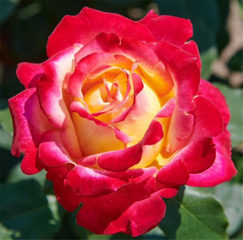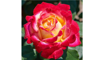 Die kugeligen Blüten der Edelrose 'Pop Star' sind von extravaganter Schönheit und beeindrucken mit ihrem gelb-roten Farbspiel. Sie sind mit einem Durchmesser von 10 - 15 cm außergewöhnlich groß, verströmen einen zarten Duft und haben eine besonders lange Blühzeit von Mai bis November.