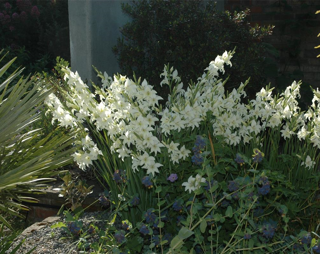 Gladiolen können von April bis Juni gepflanzt werden. Achten Sie auf eine Pflanztiefe und einen Pflanzabstand von jeweils ca. 10 cm.