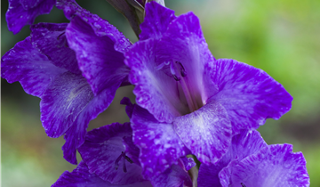 Die BIO-Gladiole 'Blue' (Gladiolus) bringt von Juni bis September wunderschöne blau-violette Blüten hervor. Die aufrecht wachsende Stauden bevorzugt einen durchlässigen, lockeren Boden in sonniger bis halbschattiger Lage. Sie erreicht gewöhnlich eine Höhe von 0,8 - 1,2 m und wird bis zu 15 cm breit.