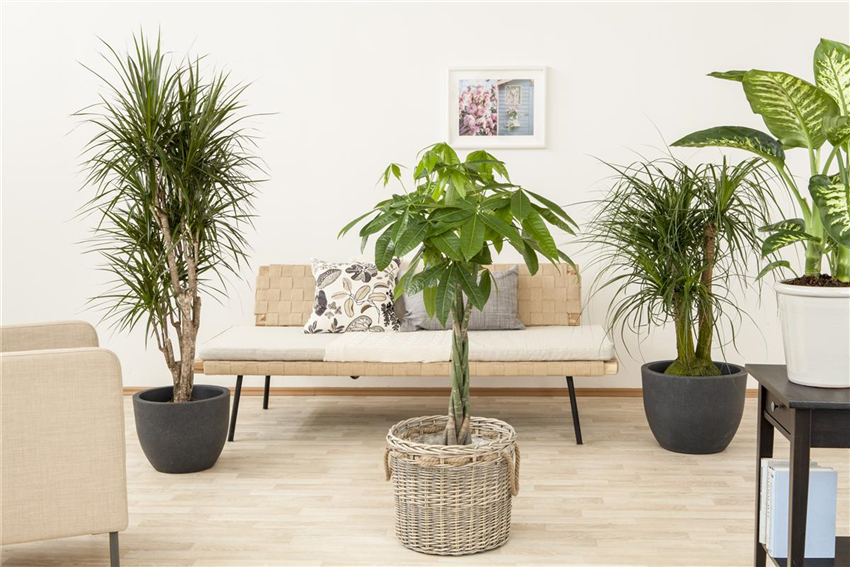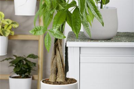 Dass die Glückskastanie zu den beliebtesten Zimmerpflanzen zählt ist kein Wunder. Die großen, knallgrünen Blätter und der hübsch geflochtene Stamm machen in jedem Ambiente etwas her.