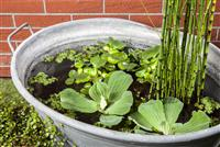 Auf etwa zwei Dritteln der Höhe des Beckens fügen Sie dann ein Röhrchen ein, das stehendes Wasser ablaufen lässt. Und nun füllen Sie das Becken im tiefsten Bereich zuerst mit Kieseln und danach mit Sand. Vermeiden Sie so gut es geht, ein Übermaß an Nährstoffen in die Feuchtzone zu bringen, sonst werden Sie mit der Zeit des Algenwuchses nicht mehr Herr werden.