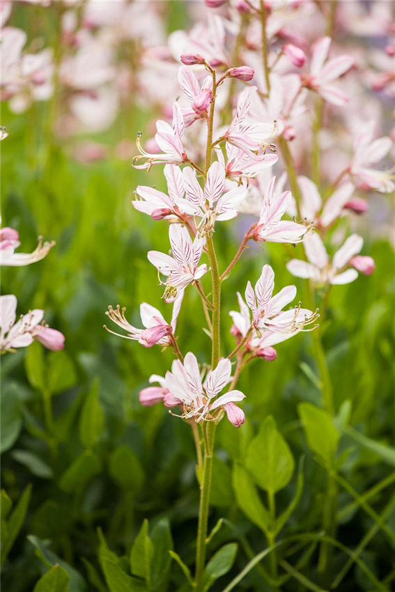 Mit einem Diptam im Garten wird es definitiv nie langweilig. Die Pflanze bildet im Sommer wunderschöne hellrosa Blüten aus, die auf kräftigen Stielen doldenartig wachsen. Eine Besonderheit der Blüten: sie sind zygomorph. Das bedeutet, dass die Blüte aus zwei exakt gleichen und symmetrischen Teilen besteht. Und als ob das noch nicht besonders genug wäre, versprühen die Blüten des Diptam einen angenehmen Geruch nach Vanille und Zitrone. Diese Pflanze ist wirklich einzigartig!